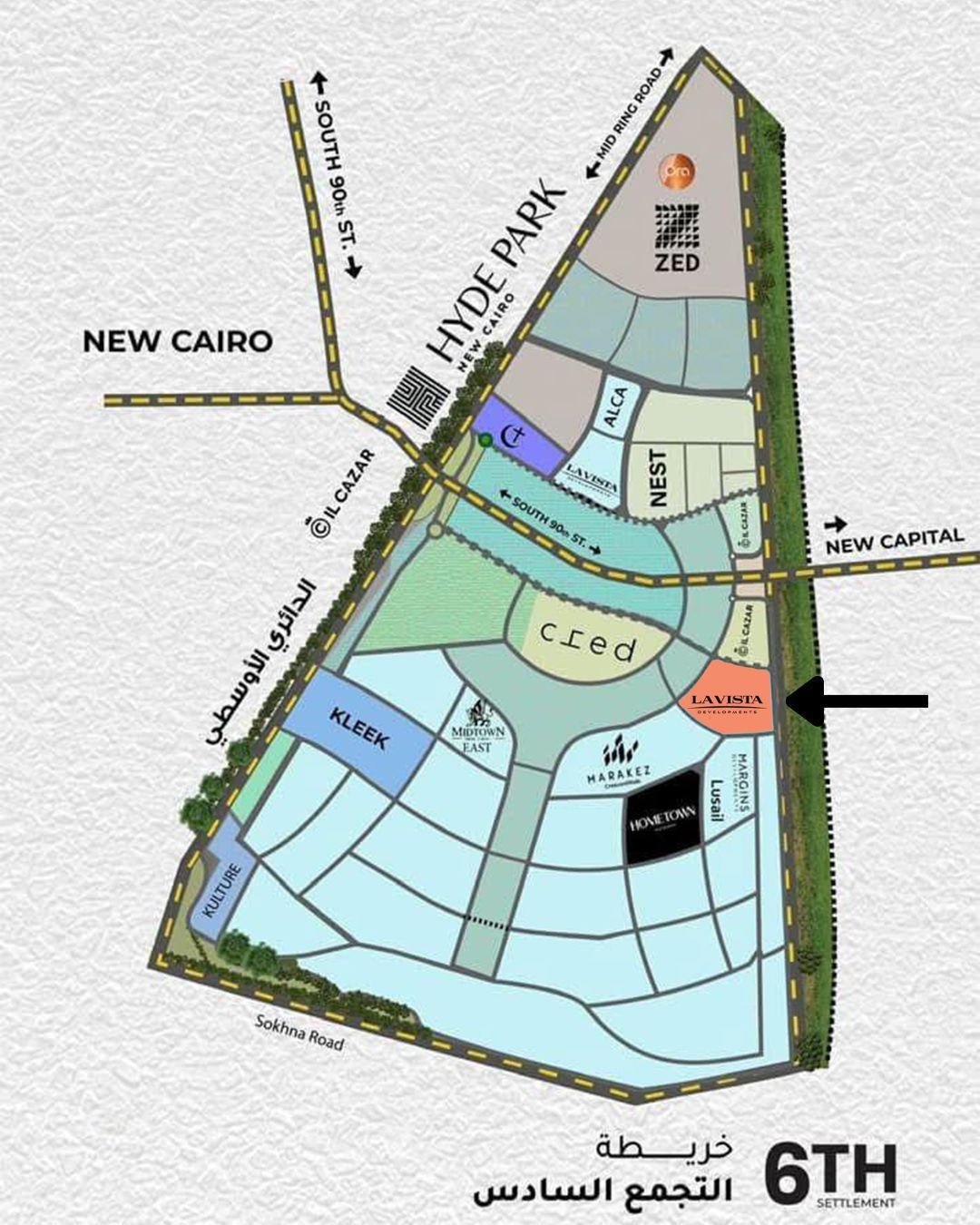 يقع المشروع بجوار كمبوند هايد بارك Hyde Park أحد أكبر وأرقى المجتمعات السكنية بالقاهرة الجديدة.